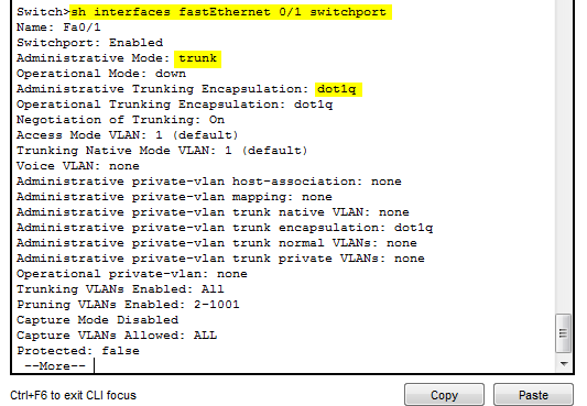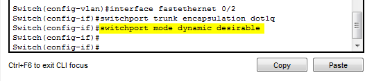 Note that in the screenshot above the encapsulation stays the same (802.1q) but the mode changed from switchport mode trunk to dynamic desirable.