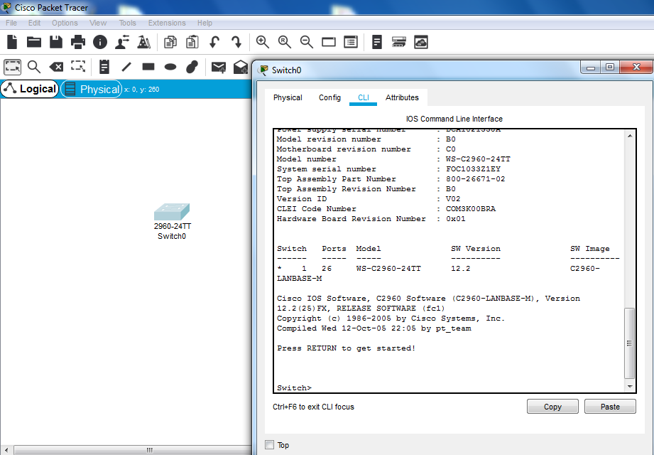 Ok lets start by opening Cisco Packet Tracer, selecting a network Switch and opening the CLI